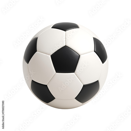 Soccer ball isolated on transparent background professional football black and white sports equipment