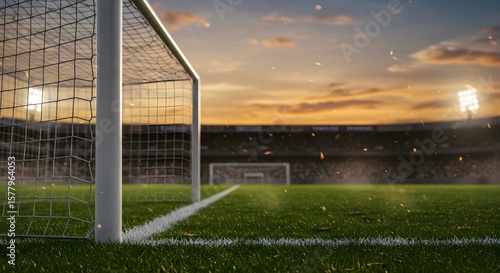 Soccer Field at Sunset A Dreamy Sports Landscape and Victory Hopes - Evoking Team Spirit and Aspiration in Sports Photography