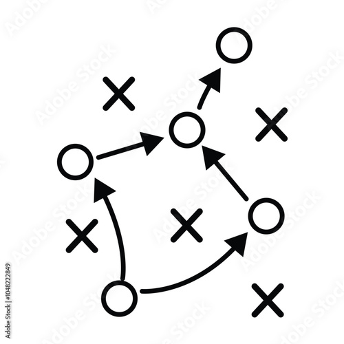 Soccer game strategy and tactic plan outline icons. Strategy, tactic soccer football instruction.