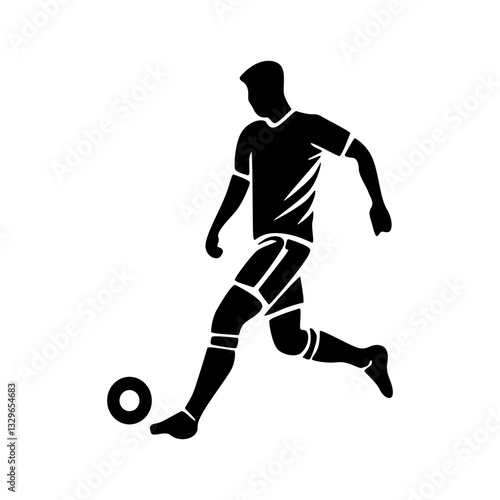 Soccer player running with ball, footballer isolated vector silhouette, football player