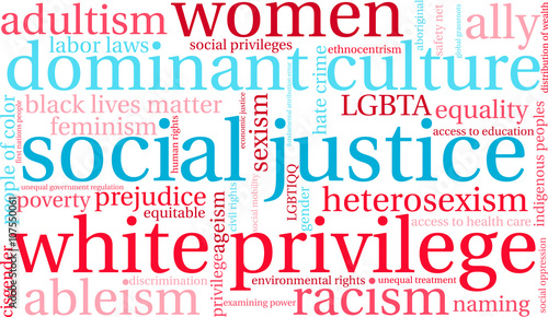 Social Justice word cloud on a white background.