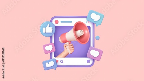 Social Media Marketing with Megaphone and Likes, Hearts, and Comments