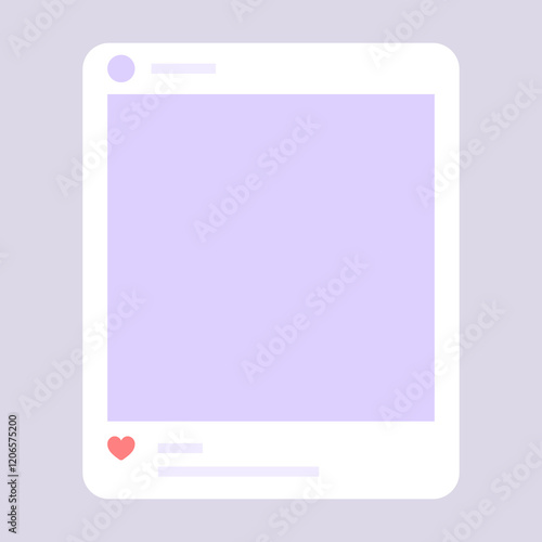 social media post mockup, photo frame template with like, love, heart icon symbol, social network feed post mock up. vector user interface template. social media interaction icons