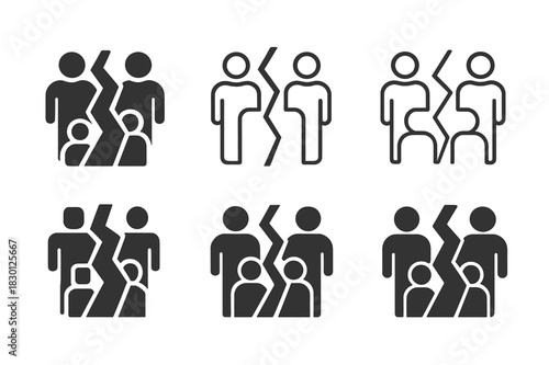 Social Risks Icons. social risks. Icon set. Set Logo of social risks: divided community. harmonious logo variations of the same emblematic concept, each with