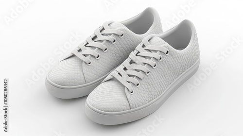 Soft 3D render of a pair of sneakers with detailed laces, lying flat on a white background.