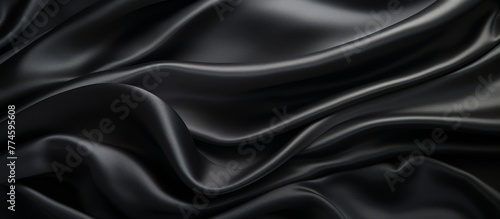 Soft and luxurious, a black silk fabric drapes gracefully with smooth, elegant folds creating a sophisticated and timeless look