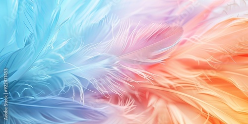 Soft, colorful feathers in blue, pink, and orange hues, creating an abstract background texture.