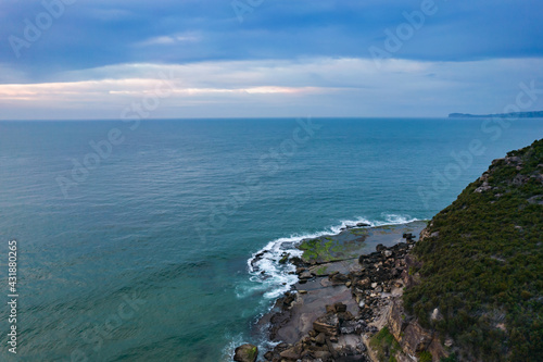 Soft high cloud aerial sunrise seascape
