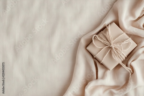Soft linen fabric serves as the backdrop for elegantly wrapped Father's Day gifts, creating a minimalist, serene composition perfect for expressing love and appreciation