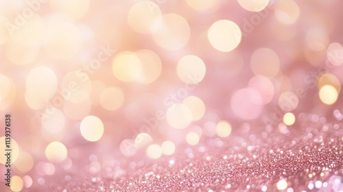 Soft pastel pink bokeh background with blurred golden lights, elegant and festive abstract backdrop for celebrations, weddings, and holiday-themed designs