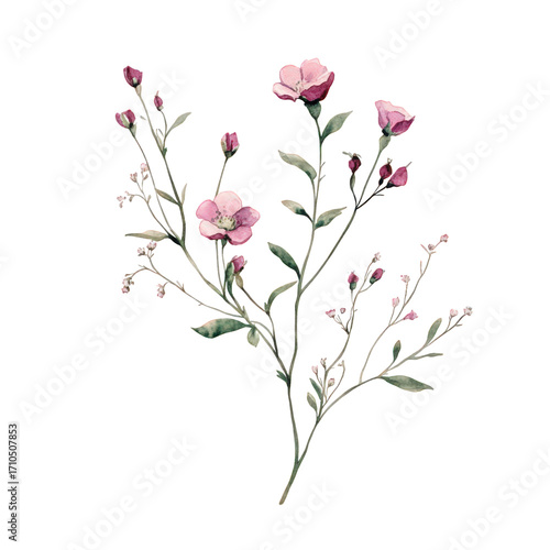 Soft pastel vintage watercolor flowers delicate pink blooms delicate branches and buds timeless floral elegance transparent background