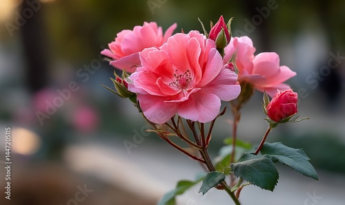 Soft pink blossoms dance in gentle light