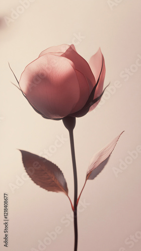 soft pink rose with delicate petals and stem on a light background with a romantic mood