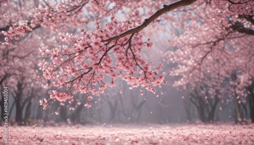Soft pink sakura petals descend slowly, creating a serene spring scene , pink petals, cherry blossom, spring flowers