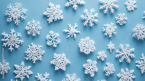 Soft Snowflake Pattern on Sky Blue Background with Intricate White Designs