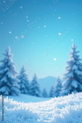 Soft snowflakes gently fall from a clear blue sky, peaceful, winter