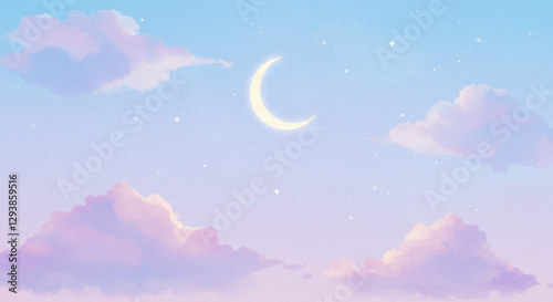 Soft watercolor wash background in pastel blues and purples Ramadan night theme
