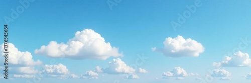 Soft white cloud floats above blue sky with few scattered grey clouds, serene landscape, , soft focus