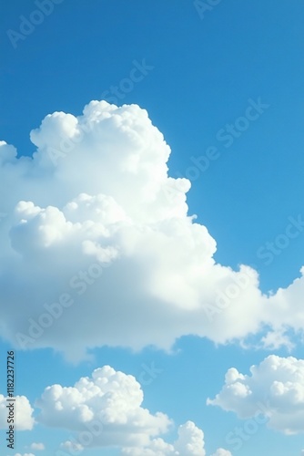 Soft white puffy clouds float gently on a clear blue sky, nature, peaceful, airy