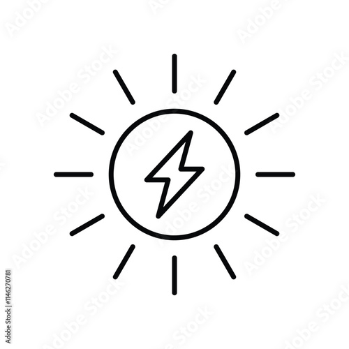 Solar power icon. Simple outline style. Energy, sun and lightning, electric, nature, innovation, sustainability, environment concept. Thin line symbol. Vector illustration isolated.