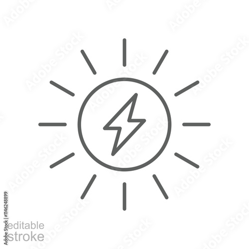 Solar power icon. Simple outline style. Energy, sun and lightning, electric, nature, innovation, sustainability, environment concept. Thin line symbol. Vector illustration isolated. Editable stroke.