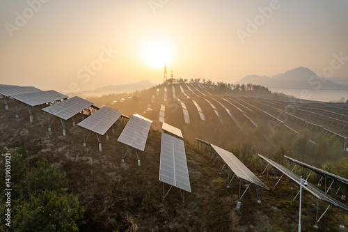 solar power on mountain with sunrise