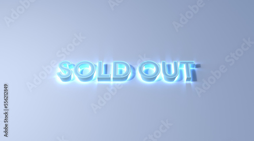 sold out text blue color neon effect on white background 3d illustration rendering . business concept