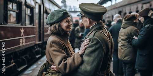 Soldat kommt heim; Wiedersehen eines Soldaten mit einem seiner Liebsten KI