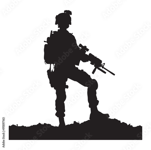 Soldier and Army Force vector silhouette black and white background.