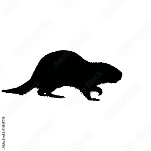 Solid black silhouette of a beaver building