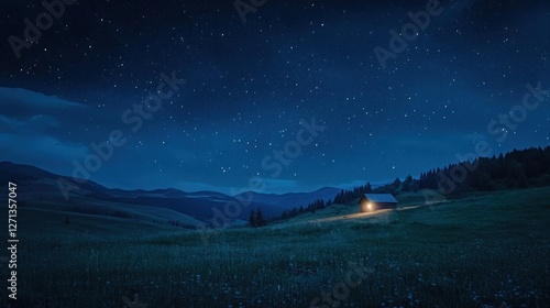 Solitary cabin under a sprawling starlit canvas in rural expanse