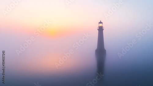 Solitary Lighthouse in Misty Sunrise Seascape