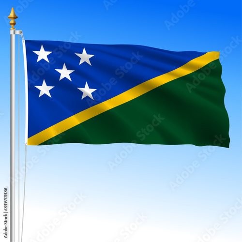 Solomon islands, official national waving flag, oceania, vector illustration