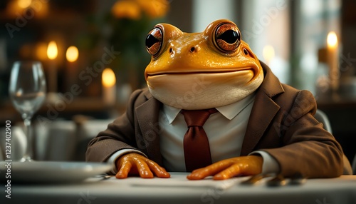 Sophisticated Frog in Suit at Romantic Dinner