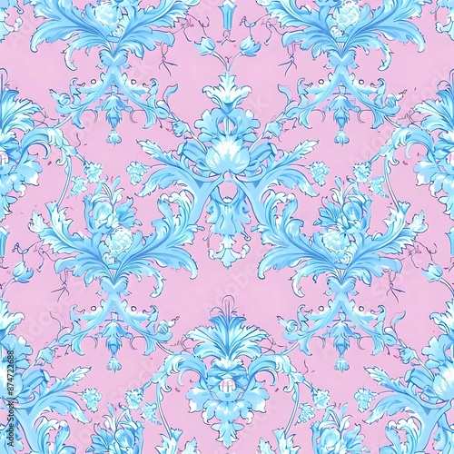 Sophisticated Light Blue and Pink Floral Wallpaper
