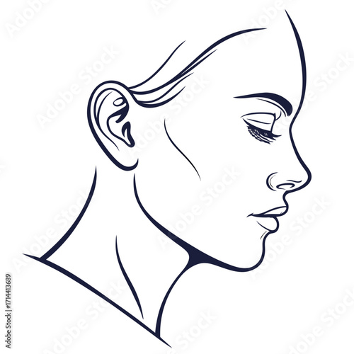 Sophisticated line drawing of a womans face in profile, highlighting her graceful features and serene expression ideal for cosmetic or wellness themes