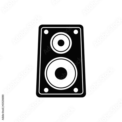 Sound speaker icon in black flat glyph, filled style isolated on white background