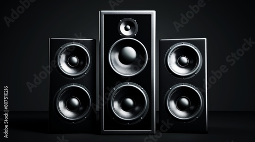 Sound speakers on a dark background create a creative music background, Ai Generated