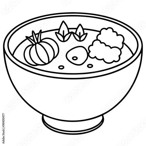 soup with vegetables outline coloring book page line art drawing