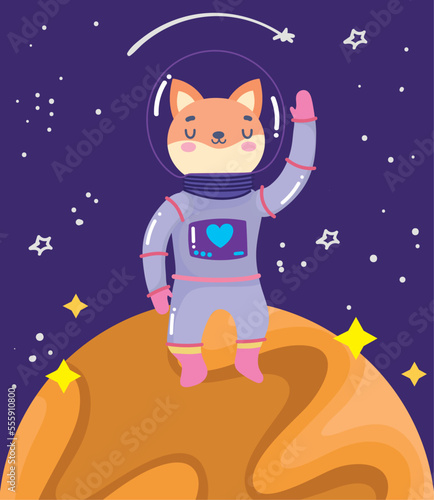 space cat astronaut waving hand