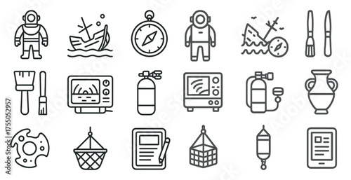 Space exploration outline icons set – flat, linear, astronaut and discovery symbols