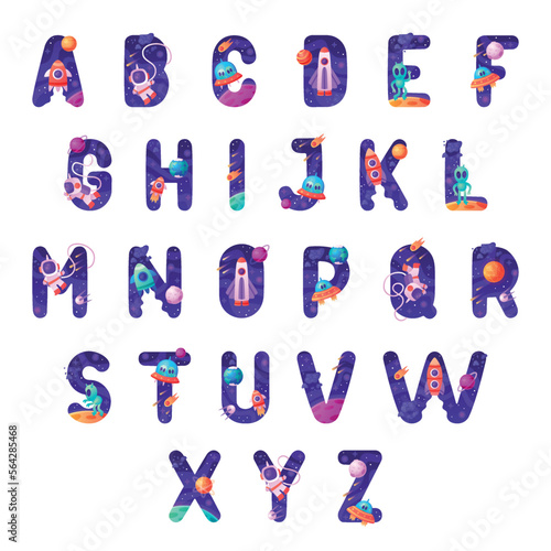 Space Font and Alphabet with Cosmic Capital Letters Vector Set