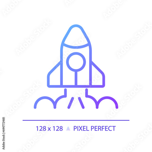 Space launch pixel perfect gradient linear vector icon. Take off. Aerospace tech. Rocket ship. Lift off. Seo marketing. Thin line color symbol. Modern style pictogram. Vector isolated outline drawing