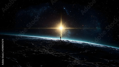 Space View With Bright Star And Planet