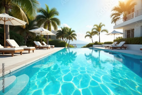 Sparkling clean pool water, a pristine white surface reflecting sunlight Perfect for summer relaxation and luxurious resort imagery , vibrant, background