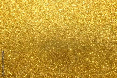Sparkling golden glitter texture background with reflective shimmering particles and subtle light effects