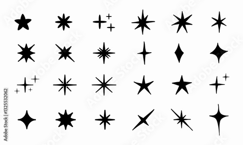 Sparkling star icons. Black and white Vector Illustration