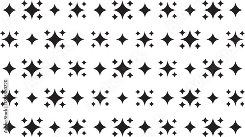 Sparkling star pattern background with black geometric shapes and minimalist ornaments