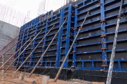 Special wooden boards for the concrete base of the building. Concrete pouring structure.