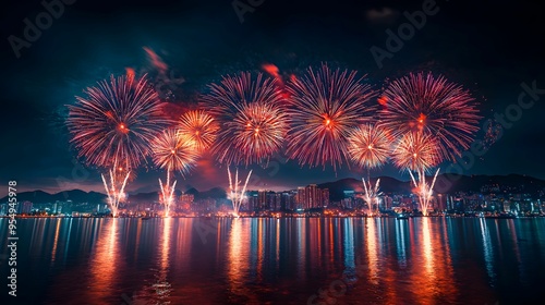 Spectacular Fireworks Display Over City Skyline